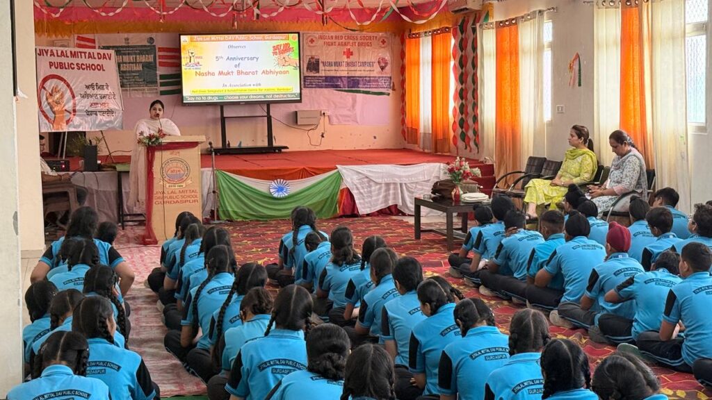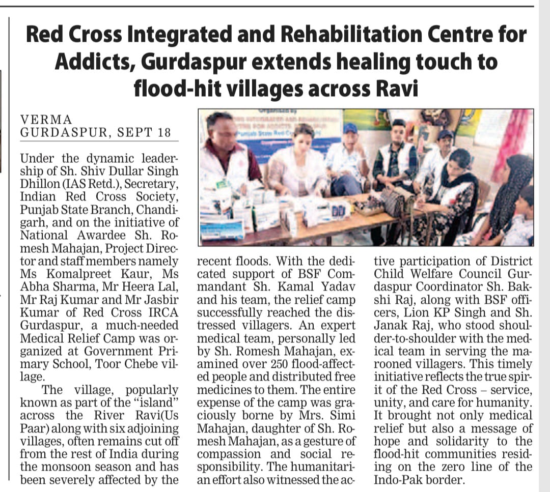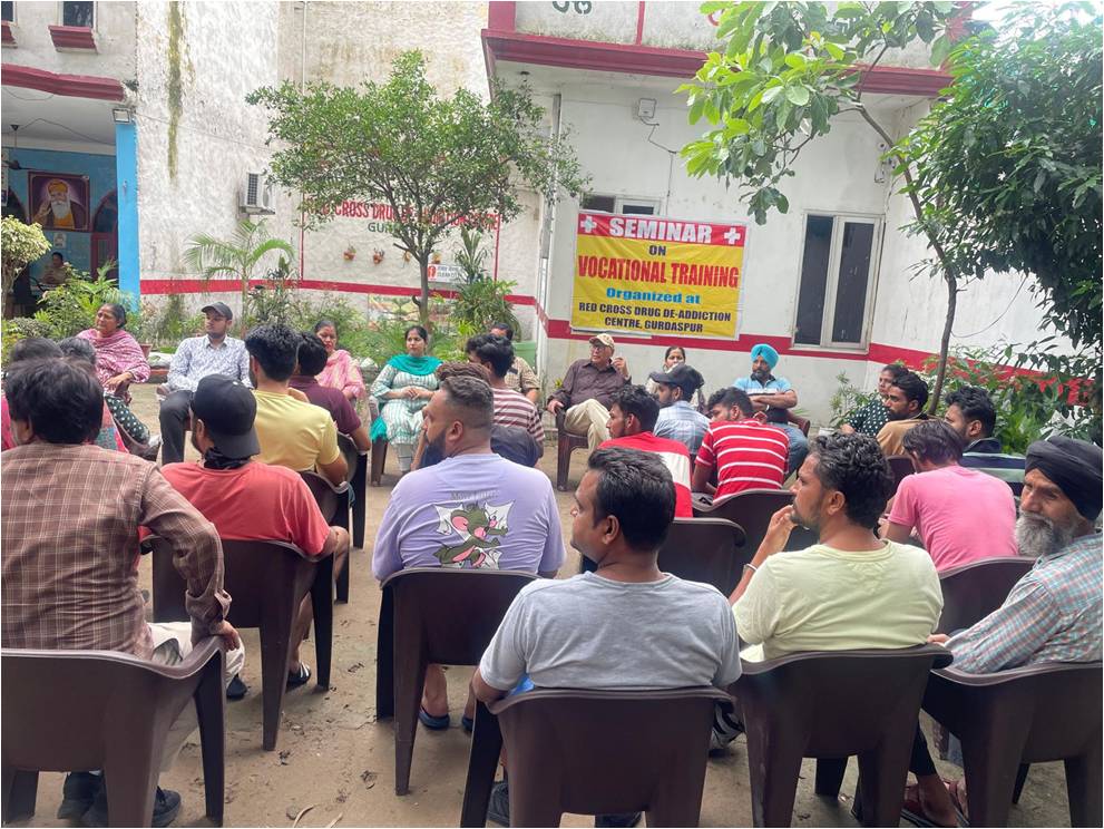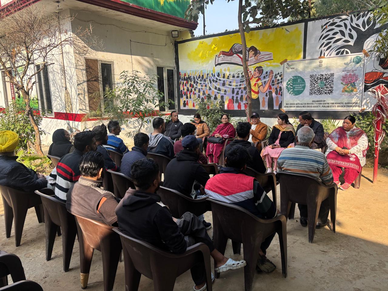 On the grand event of 5 years successful completion of Nasha Mukt Bharat abhiyan run by Ministry of Social justice and empowerment and Indian Red Cross Society Punjab State branch Chandigarh the Red Cross Integrated and Rehabilitation Centre GURDASPUR under the kind guidance and support of Sh. Shiv Dular Singh Dhillon IAS Retd, Secretary, Indian Red Cross society, punjab state branch chandigarh and district administration Gurdaspur organised multiple activities at various places like awareness seminar and pledge taking ceremony at Anand modern sr sec school Gurdaspur, Rattan sagar academy Gurdaspur, Bal Bhawna GURDASPUR, Salaria Auditorium, Army cantonment, Tibri, Tagore memorial sr sec. School and Centre premises itself followed by a rally against drug abuse with the students of Anand modern sr sec school and staff of IRCA and a painting competition on this theme amongst students of slum area school Gurdaspur.