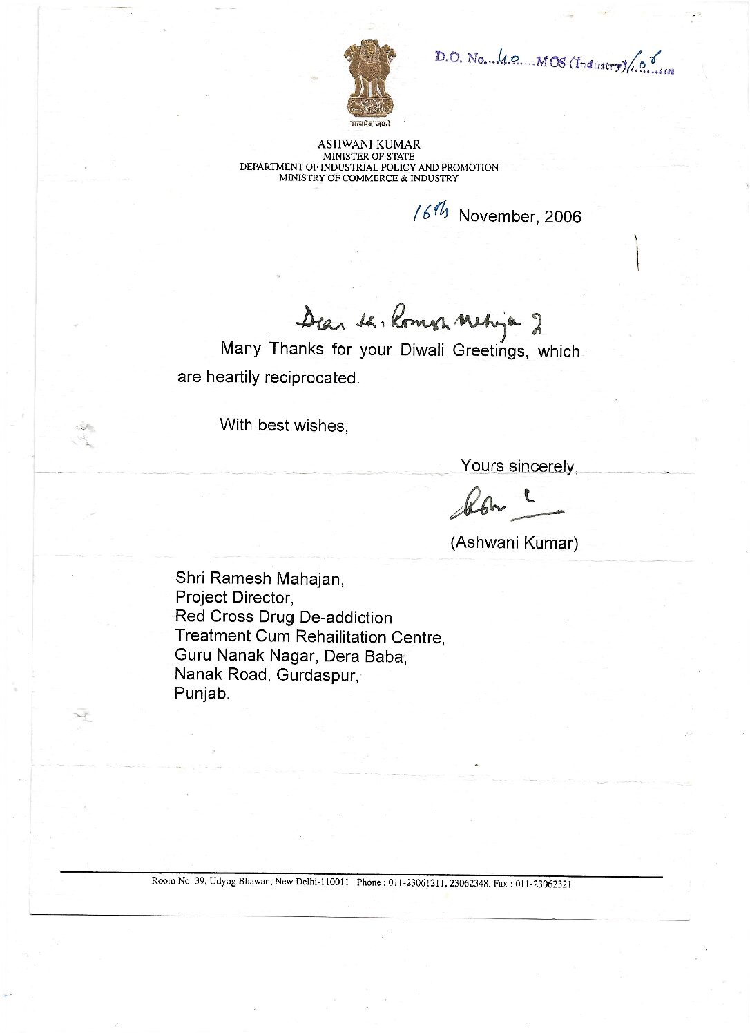 Appreciation By Ashwani Kumar 2006