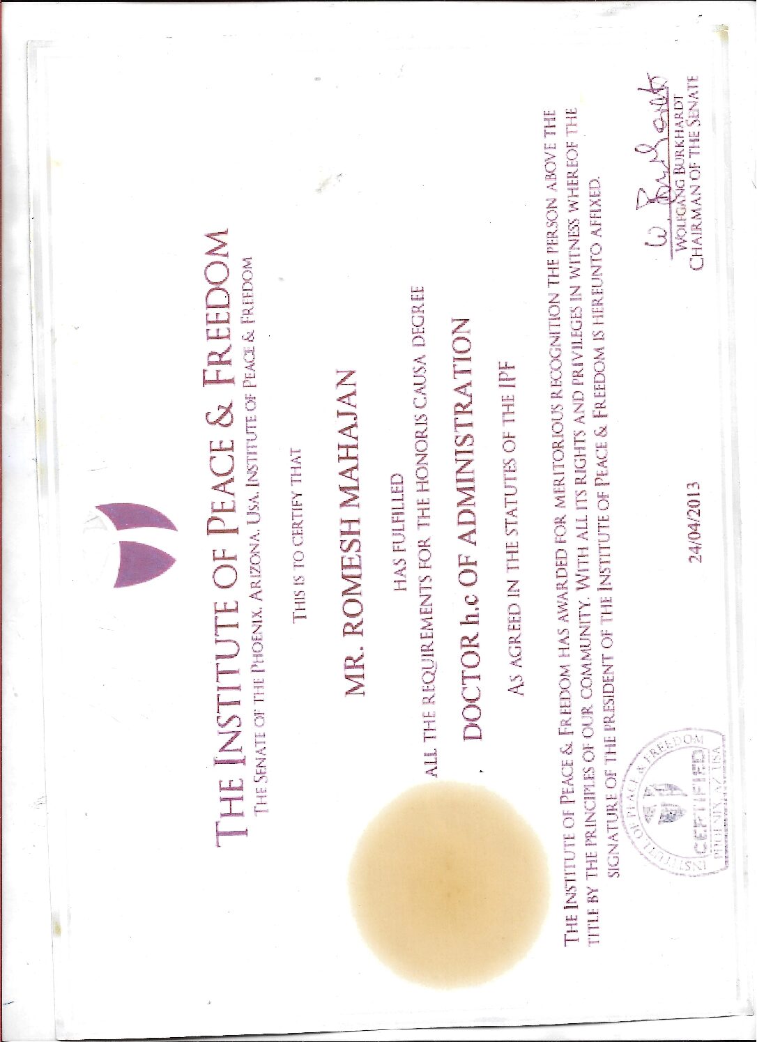 Doctor h.c of administration Instituition of Freedom 2013