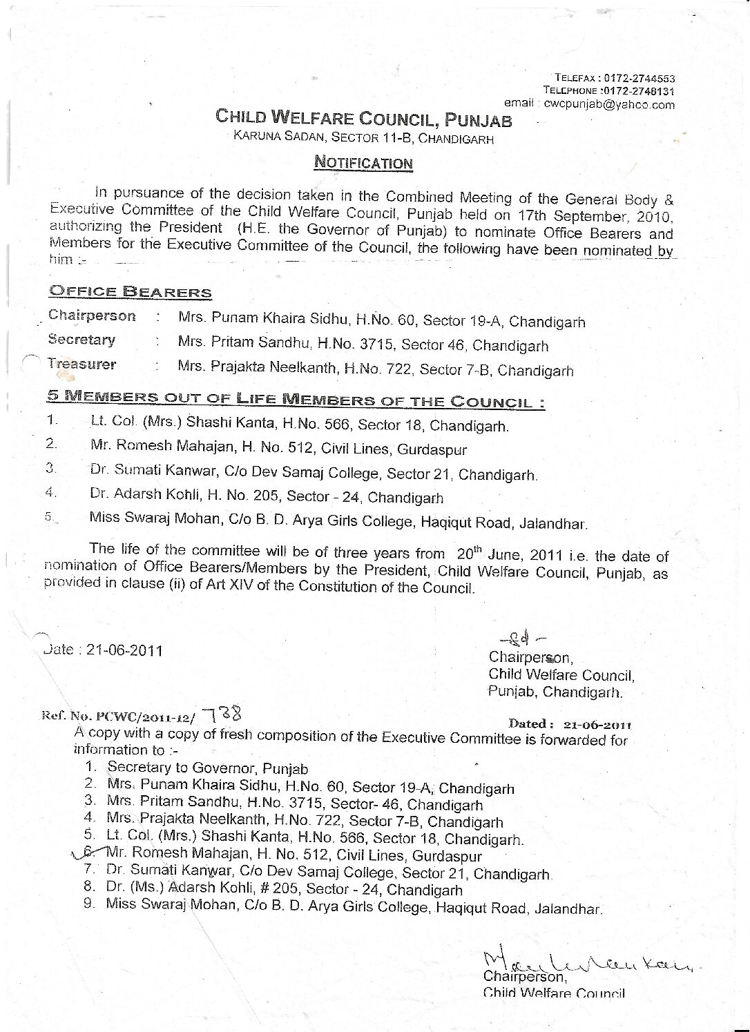 Nominated as Executive Mewmber of CWC, Punjab-2011